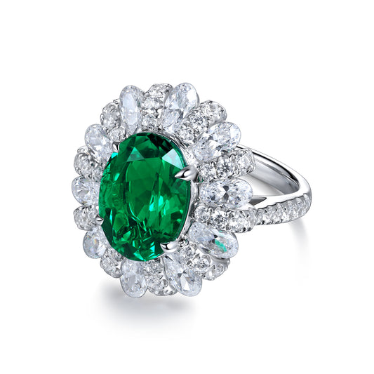 خاتم مطلي بالزمرد البيضاوي المزروع في المختبر، وزنه 4.1 قيراط