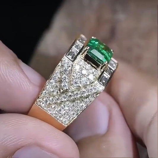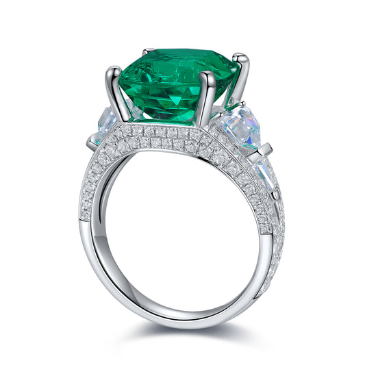 خاتم مطلي بحجر زمرد من نوع S925 مزروع في المختبر، وزنه 5.1 قيراط