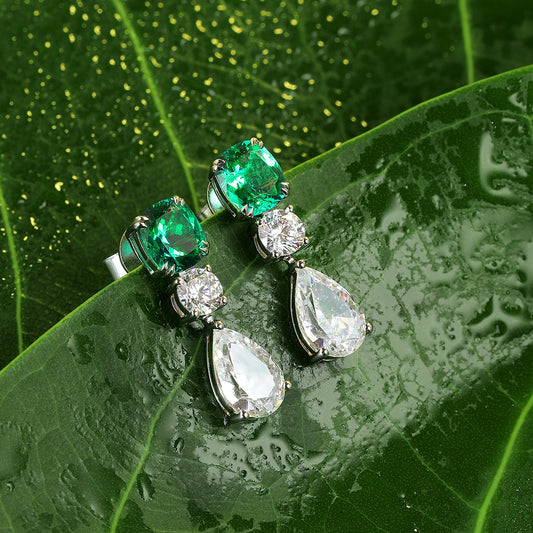أقراط مطلية بالزمرد المزروع في المختبر، وزنها 1.17 قيراط، مصنوعة من مادة S925
