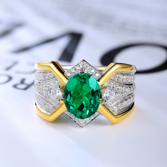 خاتم من الزمرد البيضاوي المزروع في المختبر من أنستر، وزنه 2.3 قيراط، مطلي بالذهب عيار 925