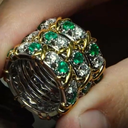خاتم من زمرد الأميرة المزروع في المختبر، مطلي بـ S925، وزنه 3.5 قيراط