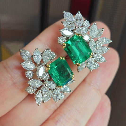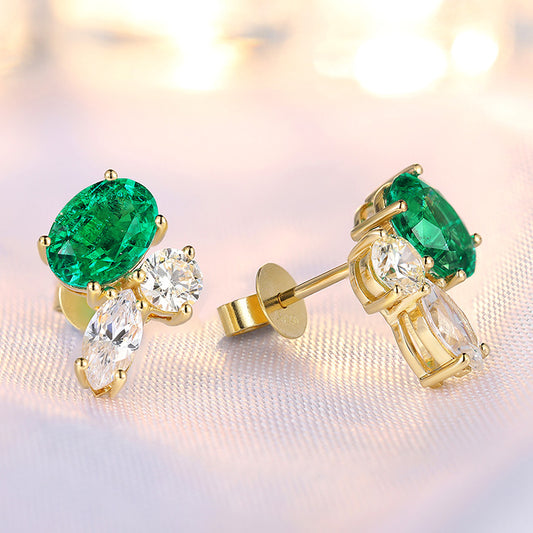 أقراط مطلية بالزمرد المزروع في المختبر، وزنها 1.17 قيراط، مصنوعة من مادة S925