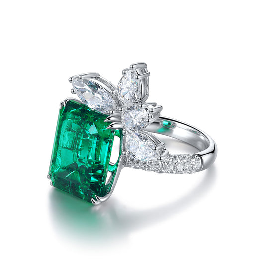 خاتم من زمرد الأميرة المزروع في المختبر، مطلي بـ S925، وزنه 6.7 قيراط