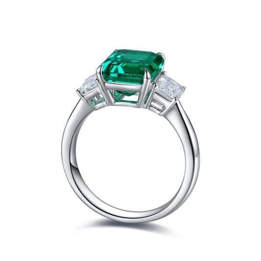 خاتم الأميرة من الزمرد المزروع في المختبر، مطلي بـ S925، وزنه 2.7 قيراط