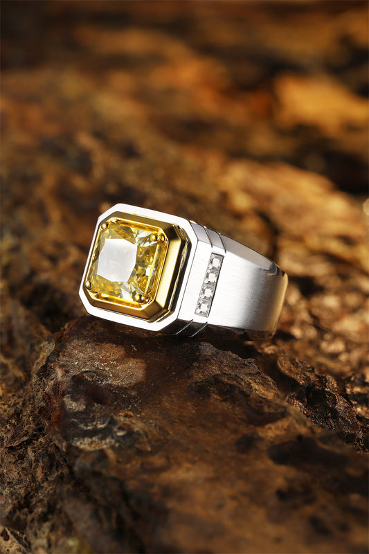 خاتم رجالي من حجر مويسانيتي من آشر، مطلي بـ S925، وزنه 3.1 قيراط