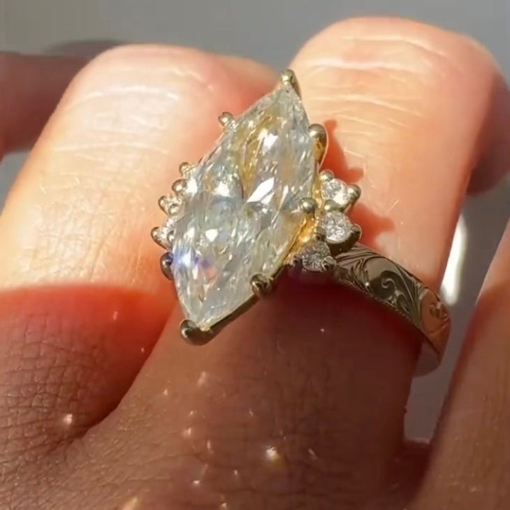 خاتم ألماس من الذهب عيار 18 قيراطًا مقطوع على شكل كمثرى ومُزرع في المختبر من مجوهرات ANSTER مصنوع يدويًا وفقًا لمعايير أخلاقية